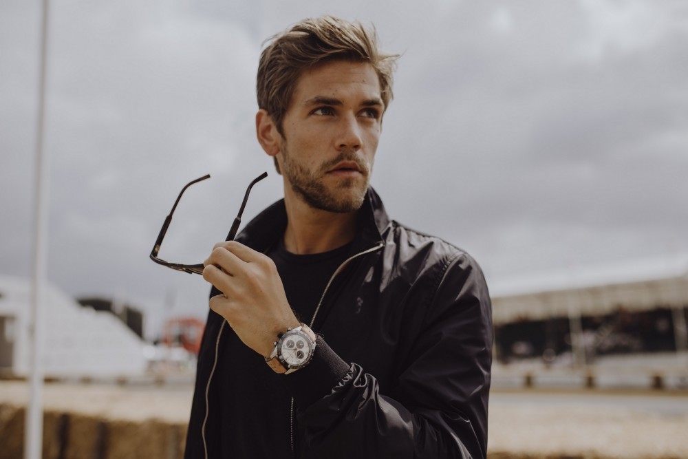 新生代瑞典「憂鬱男模」Ben Dahlhaus配戴萬寶龍TimeWalker計時腕錶參與Goodwood年度盛事。
