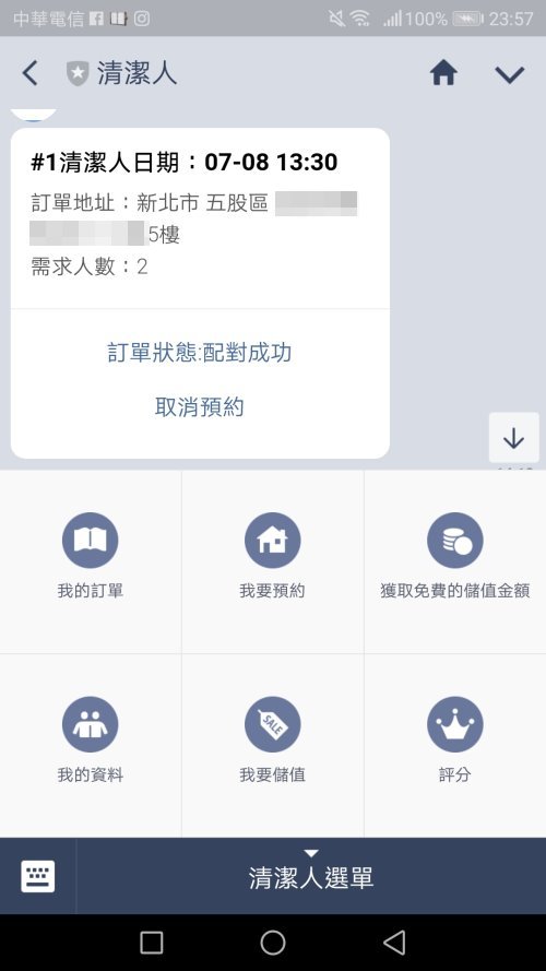 清潔預約LINE ID:@cleanbymins(LINE機器人)