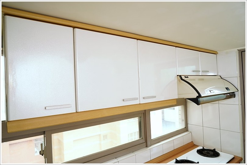 ▼另外櫥櫃內部因為怕有貴重物品不會動手整理,但是外部與抽油煙機看起來也是新漆漆!