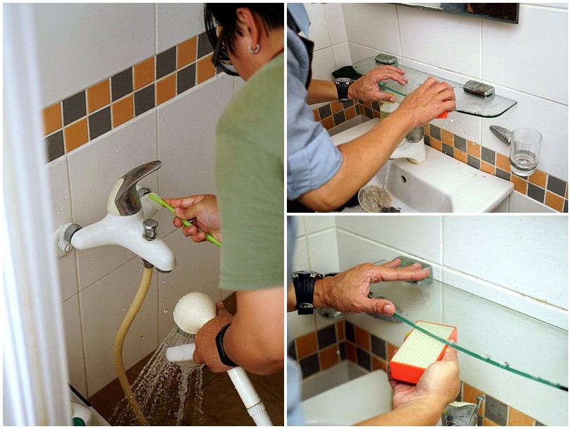 ▼另外像是蓮蓬頭的龍頭、玻璃置物架等,也通通都會打掃擦拭!