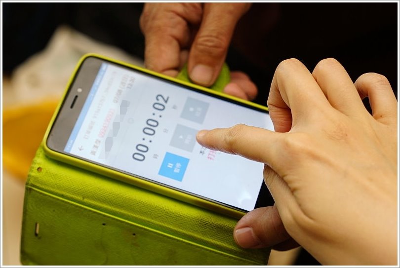 ▼溝通完畢、確認沒問題後就可以開始計時打掃了!因為有兩位清潔人所以需要兩台都按下計時鍵,雖然會差個幾秒但因為是無條件進位法,所以分鐘數還是一樣的唷!
