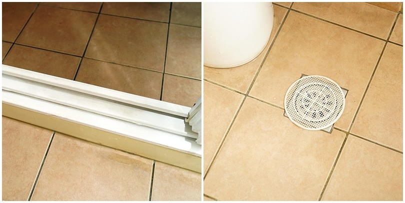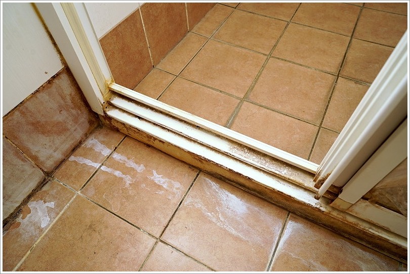 ▼還有地板跟淋浴拉門的隙縫,都藏了很多黃黃的污垢與黴菌在裡頭!