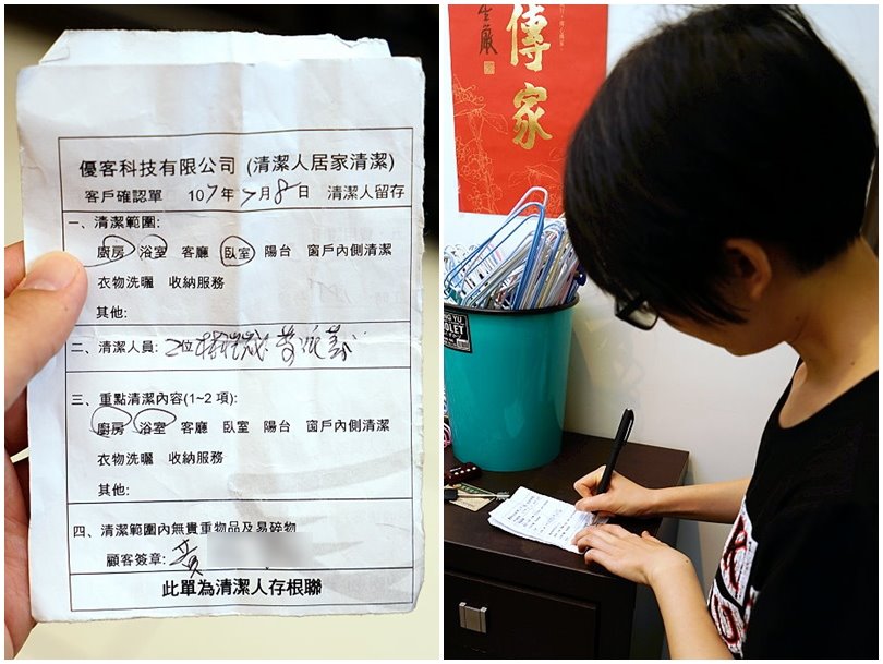 ▼一開始清潔人都會跟屋主確認要清掃的範圍與特別需要加強的重點,並確認有沒有哪些是不能動到的地方或是貴重物品,沒問題就簽名即可!之後也會改成電子化,改成用平板或是手機簽名唷!