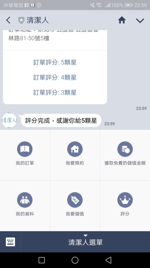 ▼訂單完成後還可以給清潔人評分唷!但因為這次他們表現得太棒了,大口直接給五顆星啊XDD