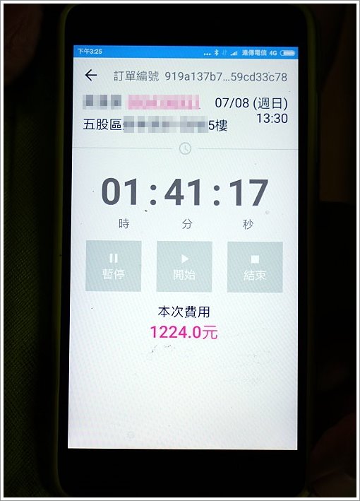 ▼確認後按下結束鍵就會出現金額,這筆費用是兩位清潔人的,所以一共是102(分鐘)x2(人)x6(元/分鐘)=1224元,也太划算啦!