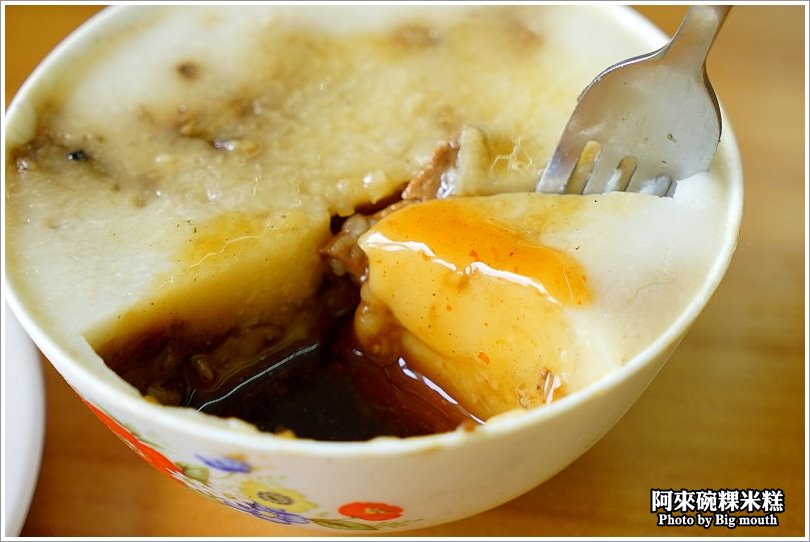 ▼吃碗粿就是要用瓷碗跟叉子才有FU啊!他們家的碗粿非常軟Q,用叉子輕輕一劃就能輕鬆分開,挖起來大口吃下超爽快!