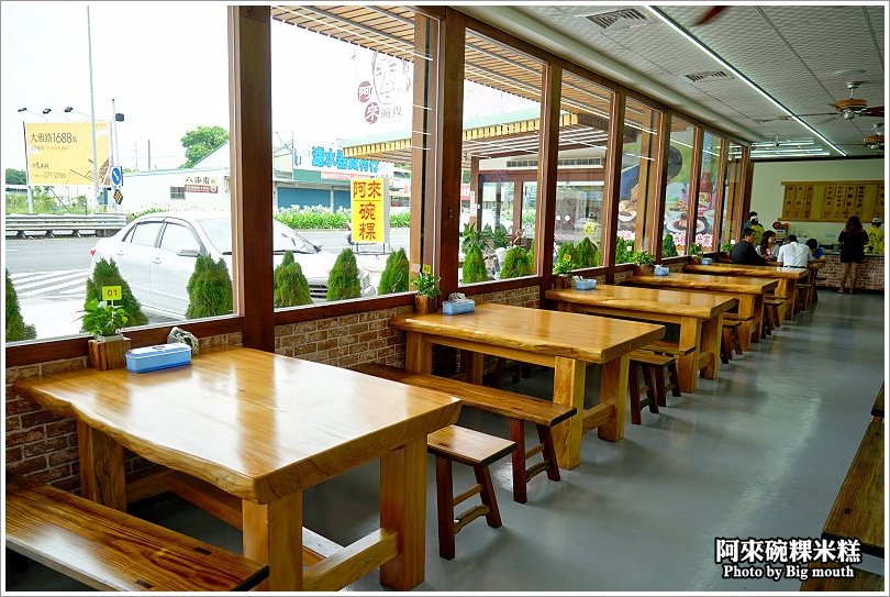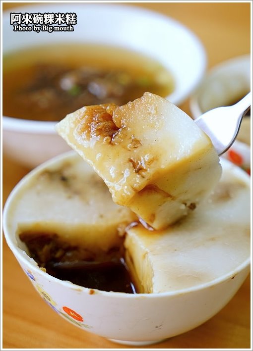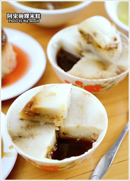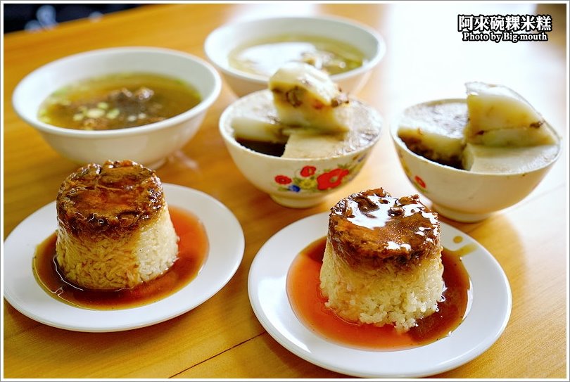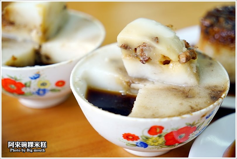 說到「阿來碗粿」,在嘉義應該是無人不知、無人不曉,不僅已經是傳承三代的老店,而且也是嘉義人早餐、午餐的首選!創立於民國60年的「阿來碗粿」總店位於嘉義市台林街上,現在在嘉義已經有多達10餘間分店,大口造訪的「阿來碗粿」中埔旗艦店更是才剛於五月開幕,不僅就位於中埔交流道旁,還有提供超大免費停車場,吸引不少在地朋友及遊客前往享用!「阿來碗粿」不僅嚴選一至兩年的在來米,從選米、洗米、浸泡、磨米漿、蒸碗粿通通都不假他人之手,搭配溫體豬肉、香菇、油蔥酥等配料,再淋上豬肉搭配醬油下去熬煮的醬料,吃起來軟Q又香甜,份量十足,讓人一吃就愛上!另外米糕也是人氣餐點,採用西螺濁水糯米搭配溫體豬肉、香菇、油蔥酥及兩款特製醬料,吃起來粒粒分明又有Q勁,搭配自製蒜泥醬更是一絕!其他湯品、小菜也都有不錯的表現,重點是通通都是銅板價,特地去吃都值得啊!