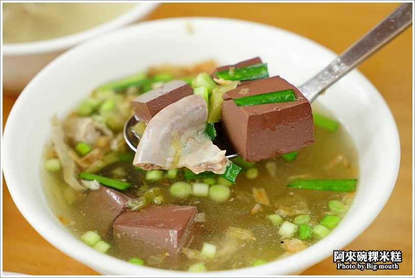 ▼豬血綜合湯,裡頭不僅可以一次吃到豬血、粉腸、小腸與肝連肉,料多實在,而且價位也非常親民!上桌前還會撒上韭菜、酸菜、芹菜與油蔥酥提味,整碗湯頭喝起來清爽順口帶點微微酸甜,豬血Q嫩又多汁,粉腸、小腸吃起來軟Q滑嫩,處理的很乾淨所以沒有什麼腥味;肝連肉香軟柔嫩,搭配鹹甜酸香的湯頭更是超合拍,感覺喝一碗就很有飽足感了!