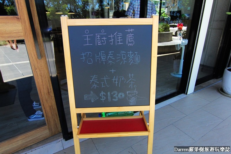 丁金泰式涼麵米粉湯就在氣派大樓的一樓,門前有小黑板寫著主廚優惠~招牌泰涼麵+泰式奶茶只要130元