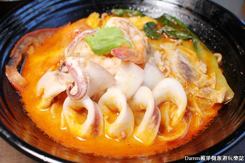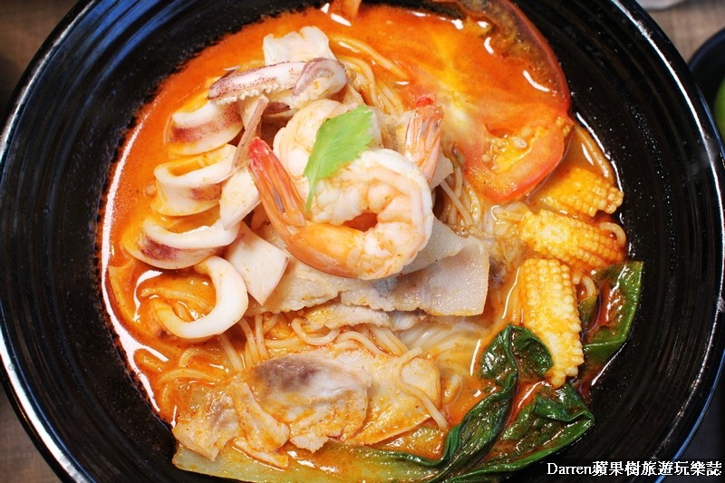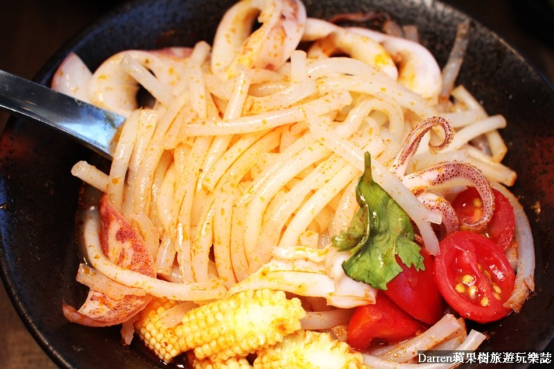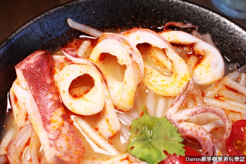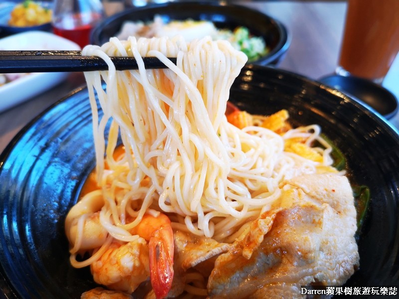 泰式酸辣海陸麵的使用日式細拉麵,邊吃邊帶起酸辣湯瞬間滑口充滿彈性,又有日式拉麵跟泰國菜mix的錯覺
