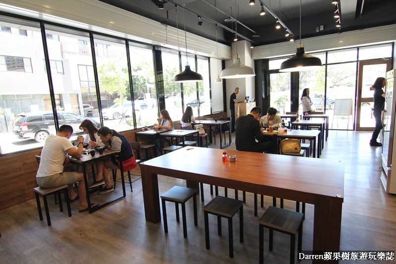 走進店內簡約輕工業風餐廳,明亮清爽的環境,讓來店用餐的客人心情也更加輕鬆,搭配地板和餐桌選用木板