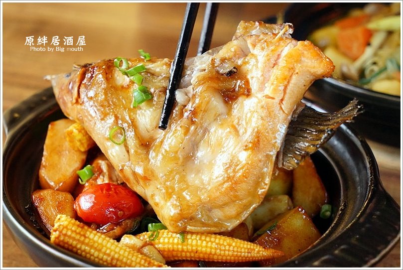 ▼烤三文魚頭,這道算是偏日式的砂鍋魚頭,裡頭的鮭魚頭先烤過之後再用醬油煨煮,最後再用砂鍋裝盤,一上桌就香氣四溢,感覺很特別啊!