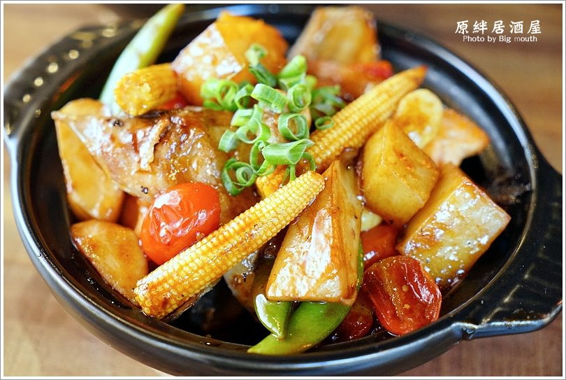 ▼鮭魚肉吃起來細膩軟嫩又入味,帶有鹹甜的醬香,單吃就很涮嘴!另外還有馬鈴薯、玉米筍、杏鮑菇等配料,均勻裹上醬色後吃起來不僅有食材的天然原味,多了一點醬香提味,整個開胃又下酒啊!(未滿十八歲請勿飲酒)