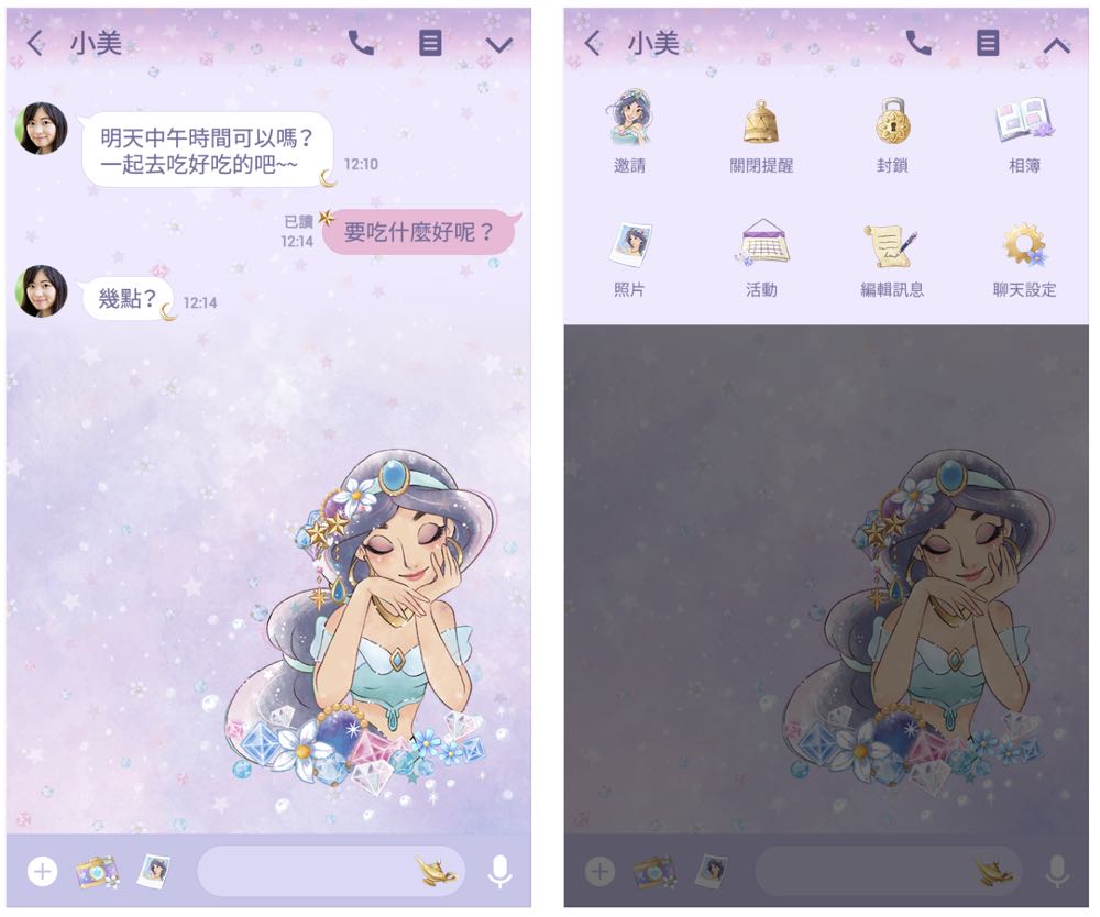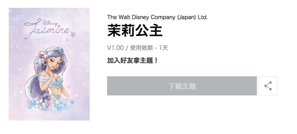 LINE 的限時免費主題活動又來了!這次請來的是迪士尼的公主群之一 – 茉莉公主,將提供 LINE 用戶在 27 日晚間 10 :59 前下載使用,並且與以往的限時免費主題相同,將會在 24 小時後自動恢復回原本的主題!