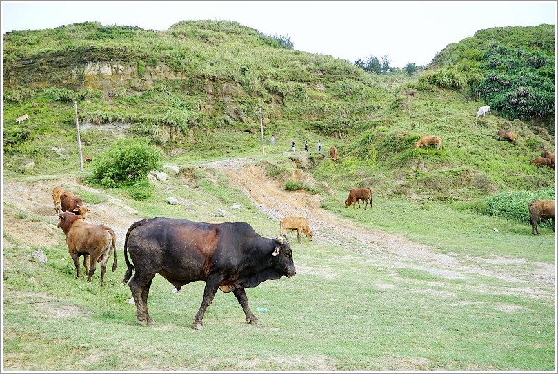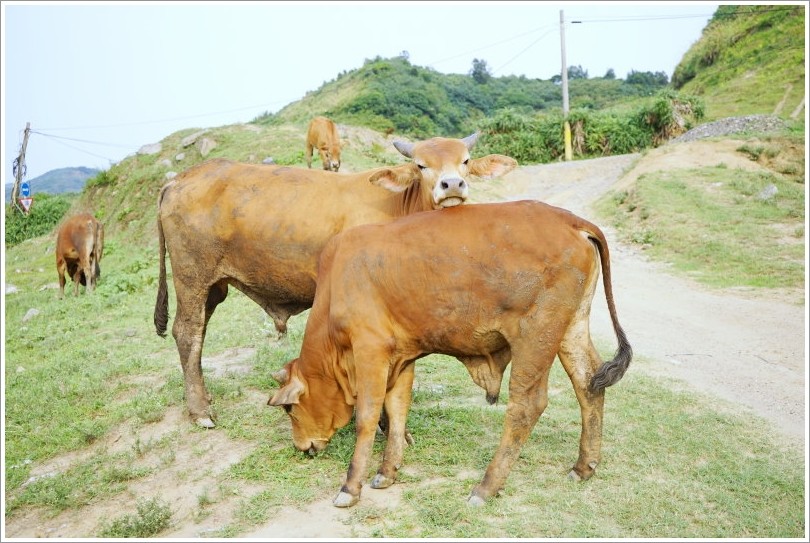 ▼在路邊就能看見整群牛隻在草地上、山坡上吃著草,真的是很特別的景色!不時還可以看見主人騎著車來巡邏,順道看看牛兒有沒有乖乖!