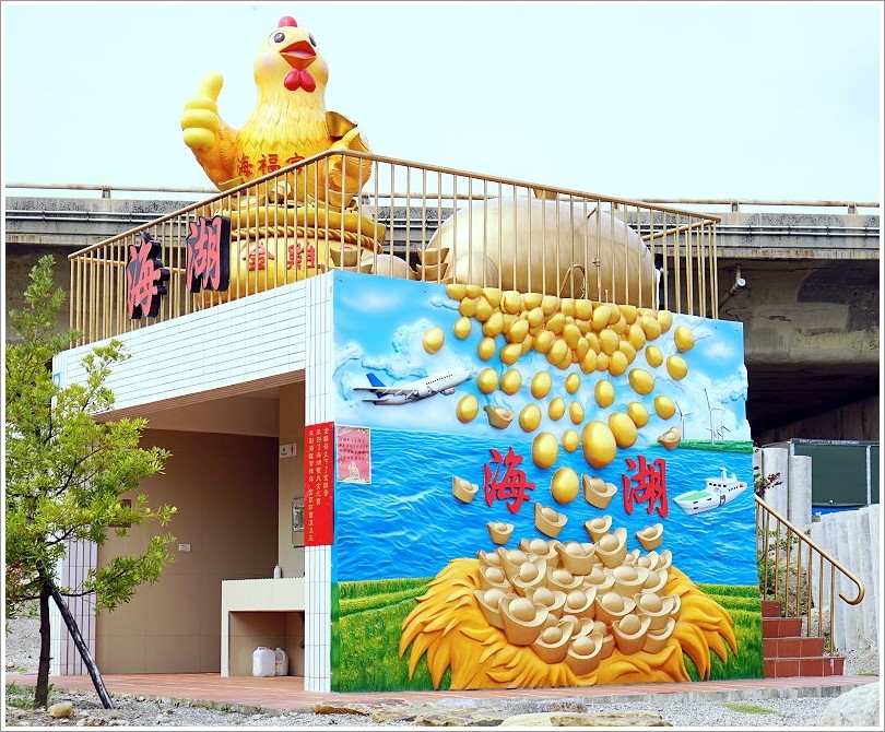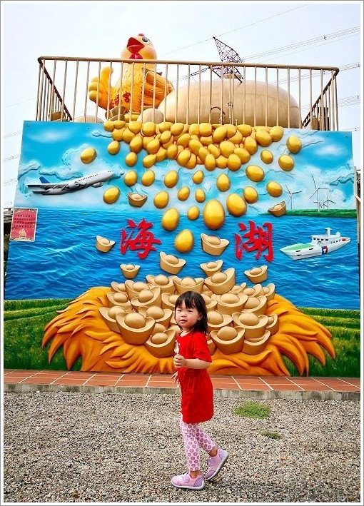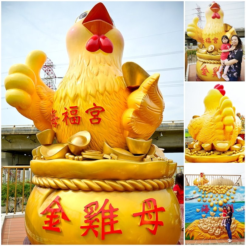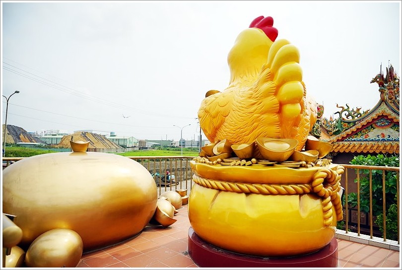 ▼最吸睛的莫過於這隻金雞母啦!其實一開始我們也是因為小口愛在車上看到這隻超可愛的金色咕咕雞,才讓我們發現了祂的存在,立馬停車下來拜拜兼玩耍!
