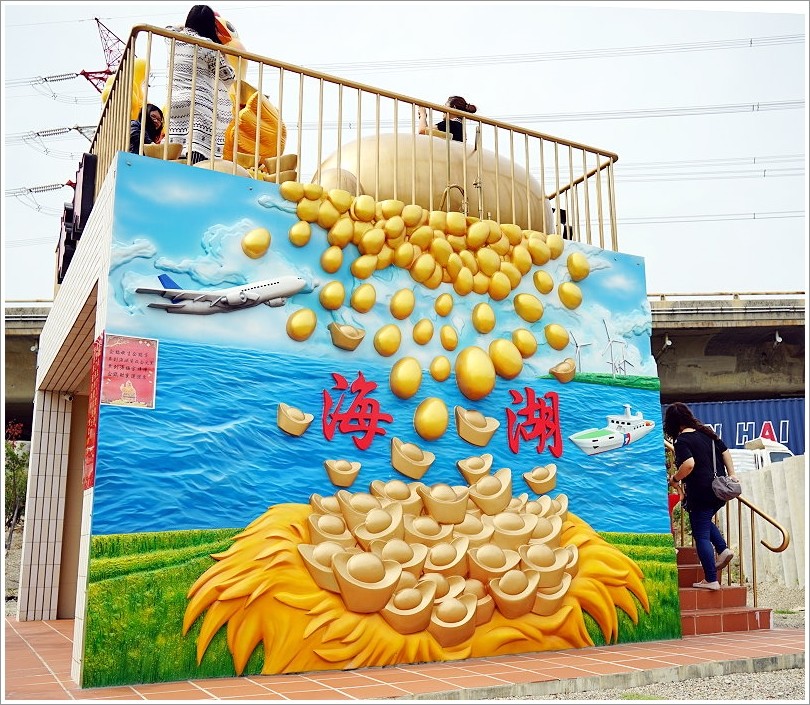 桃園其實好玩又有趣,很多地方都是值得細細品味!這次大口要帶大家來個桃園西濱景點一日遊,從海福宮金雞母彩繪牆,到附近的竹圍漁港、林口水牛坑(大峽谷),最遠還可以到永安漁港,很適合親子或是一家大小一起玩透透!說到竹圍漁港、林口水牛坑、永安漁港或許大家都去過了,但是海福宮的金雞母及彩繪牆應該就很少人知道了~這裡供奉的是土地公爺爺,特別的是還有提供金雞母來讓大家擲茭,連續擲得三個聖茭的朋友就可以將金雞母帶回家,擺在家中財位就可以祈求事業順利、財源滾滾來囉!海福宮前方的彩繪牆更是好玩又有童趣,這裡通通都是利用廢棄物所設計而成,不管是拍照打卡或是互動都很促咪,網美必來啊!