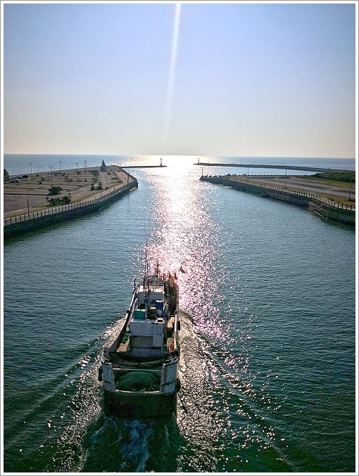 ▼從橋上俯瞰下去,剛好看見漁船要出港,這美景讓人差點以為一秒出國了呢!
