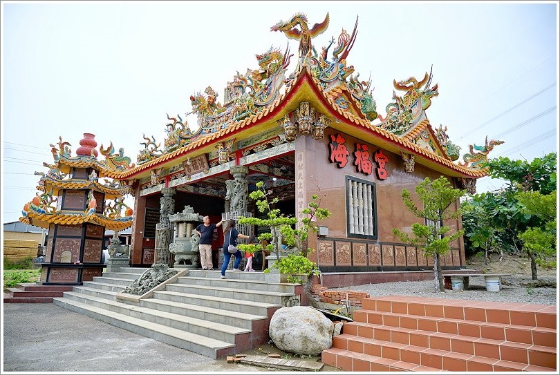 ▼這間「海福宮」已經矗立在這裡相當多年了,不僅有精細的雕工與石柱,而且規模還不小!裡頭供奉的是土地公爺爺,根據當地常來拜拜的老闆說這裡的土地公爺爺其實還蠻靈驗的,心誠則靈,有拜有保佑!