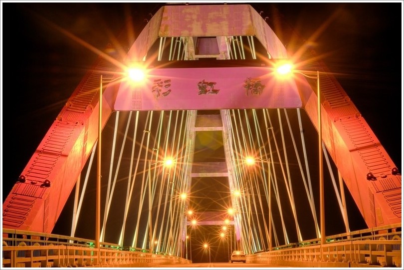 ▼夜晚的彩虹橋還會打燈,看起來又有不同的美感!