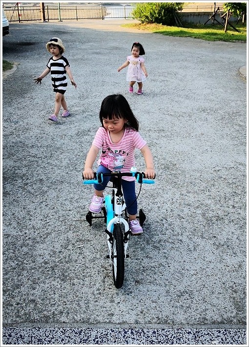 ▼我們還特地帶了小口愛的腳踏車,讓她在這裡騎,沒有車的小朋友就在後頭奔跑,感覺也是滿好玩的XD