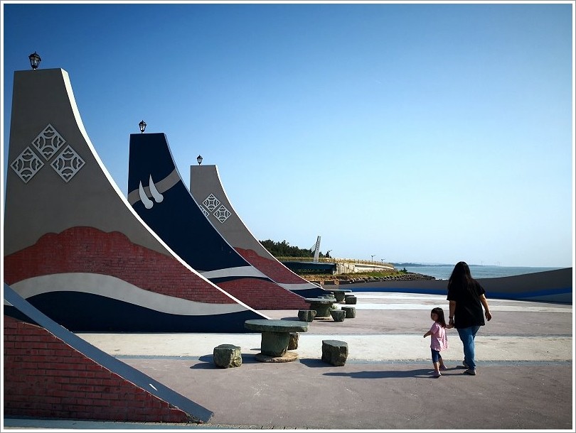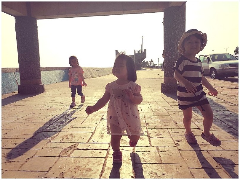 ▼接著我們來到永安漁港踏浪玩耍,趁著太陽下山前,趕快帶小朋友來走走!