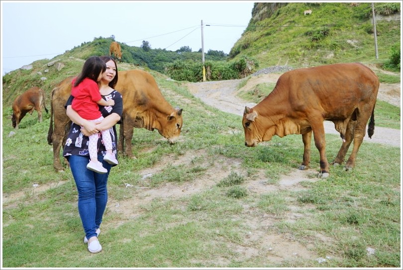 ▼小口愛也跟著走到最高的地方往下看,因為有點怕怕所以只能抱著拍照留念XD這裡到處都可以看見水牛在活動,真的很促咪,不過大家記得不要太靠近去打擾到牠們,以避免發生危險唷!
