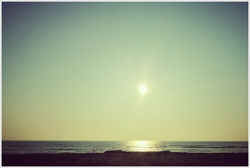 ▼夕陽快要沉到海裡啦~看起來超級夢幻的啦!