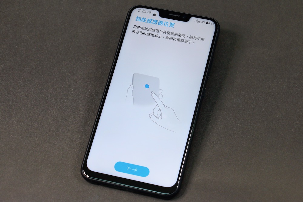 另外,ZenFone 5Z 亦有提供指紋辨識功能,同樣依照步驟建立指紋資訊,即可透過背蓋上的指紋辨識器體驗 0.3 秒快速解鎖,並透過臉部與指紋辨識兩種識別方式,讓手機內的重要檔案可以受到最完善的防護。