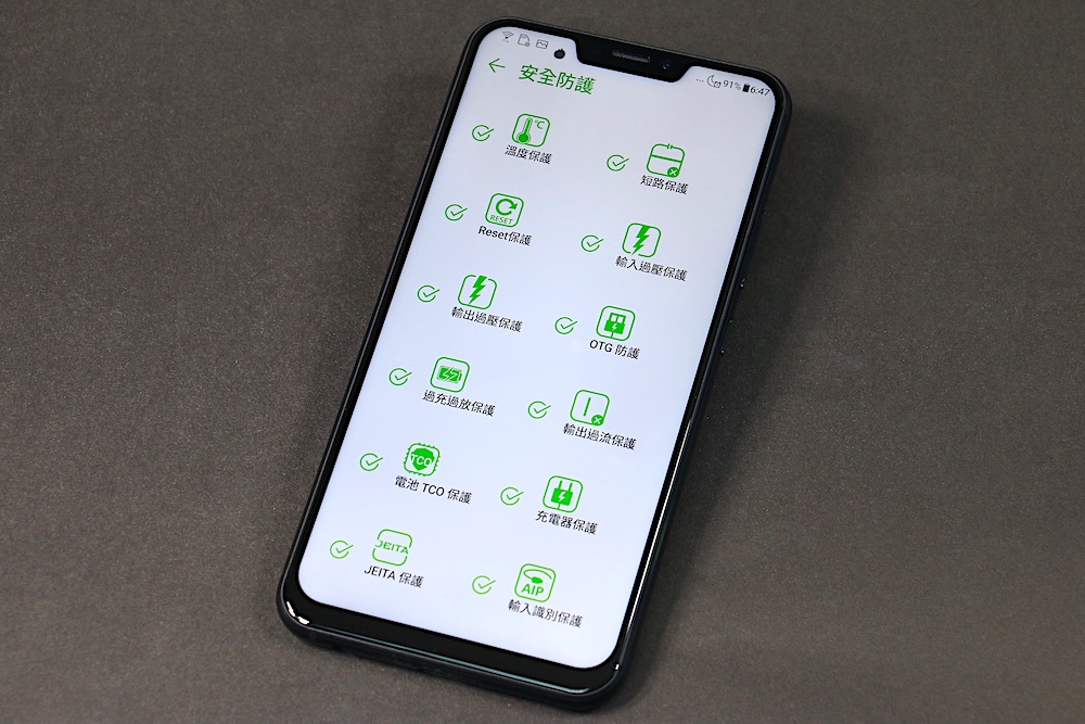 另外,在智慧管家中還有提供安全防護功能,這功能主要目的是快速檢查手機是否有任何異常狀況,並針對溫度、短路、輸入過壓…等項目進行保護措施,避免電池在充放電狀態中發生異常狀況,提高使用者使用手機的安全性。