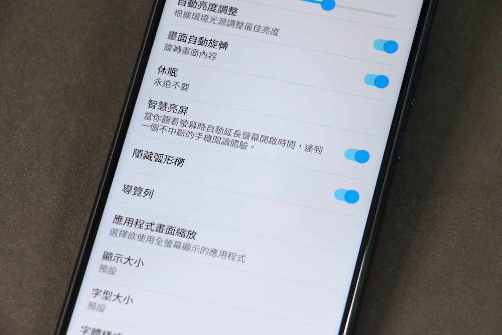 另外,為了讓短時間還沒辦法適應異形切割全螢幕的使用者有更好的使用體驗,ZenFone 5Z 內建隱藏弧形槽的設計,只要勾選之後,異形切割全螢幕的左右兩側會被自動填滿,讓螢幕切換為傳統螢幕的顯示方式。