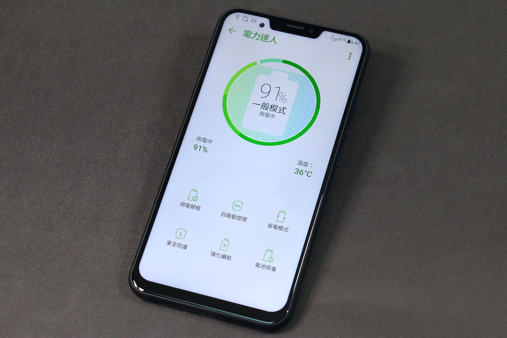 除了強悍的效能之外,續航力表現同樣也是使用者在乎的,而配備 3,300mAh 大容量電池的 ZenFone 5Z,還另外內建電力達人功能,不但可以透過此功能檢視目前電池使用狀態,還能進行電池的用電健檢、省電模式切換,以及強化續航與電池保養,讓非常在意手機續航力表現的使用者可以依照個人需求選擇適當的用電模式,並透過用電模式來延長本來已經非常持久的續航力。