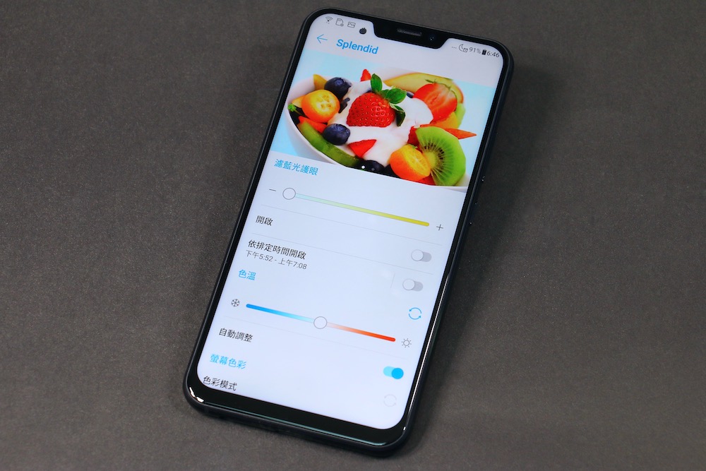ZenFone 5Z 具備自動調整色溫功能,可透過感測器偵測環境光線色溫,並調整出最適合目前環境的螢幕色溫,不僅可以顯示出更鮮艷且準確的畫面顏色,同時也可以藉此保護長時間盯著螢幕看的眼睛。