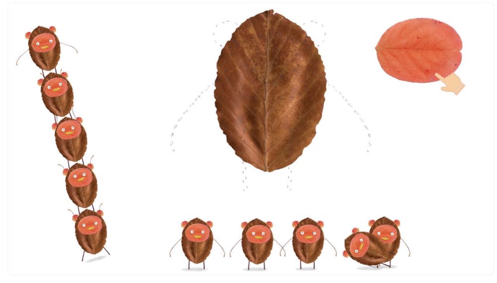 《Labo Leaves》共有 18 個分別是蝴蝶、樹葉人樂隊、小鳥、金魚、猴子、小豬、小狗、母雞、牛、羚羊、鴕鳥、野牛、驢子、長頸鹿與婦人等獨立的小關卡,每一關都有不同形狀、大小的樹葉來讓小朋友拖曳拼貼成目標圖形,可以藉此訓練小朋友的觀察力、手指小肌肉的靈活度,拼貼好後還會依照不同的主題有不同的動畫設計!