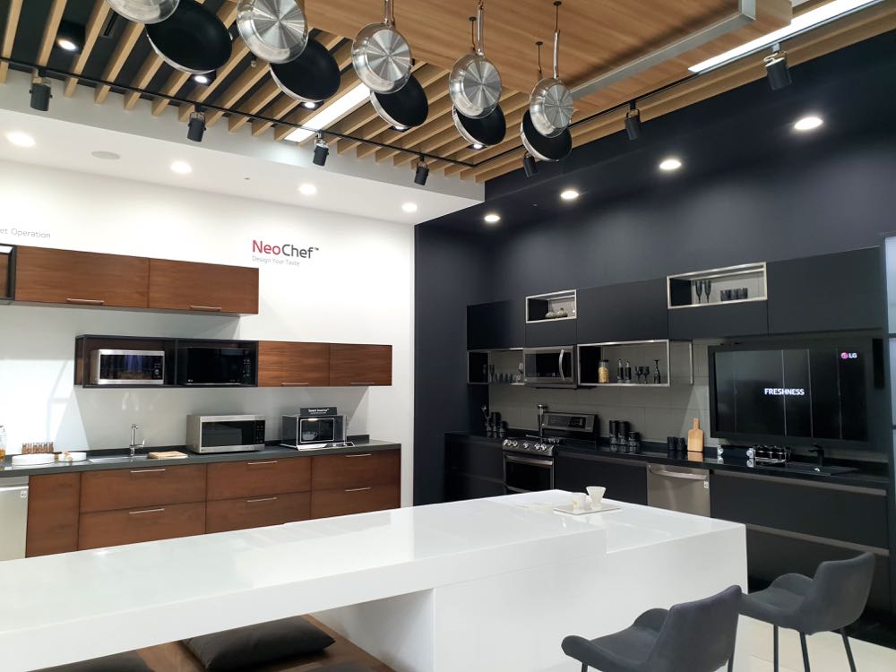 其實整個工廠展示間我們可以看到 LG 智慧家電從電視、空氣清淨機、冷氣機、洗衣機、洗碗機、烤箱、冰箱等可以說是逐漸構建成了一個 Smart Home,因此不論在何種展示情境中我們都能看到 LG 的家電系列優雅的現身在其中。