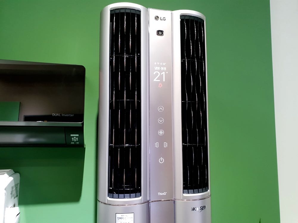 現場也為大家展示了直立式的智慧冷氣機,除了擁有左右兩側冷氣孔,還兼具了冷氣、暖氣、除濕與空氣清淨的功能,並且結合智慧語音控制的功能,用戶可以甚至不用搖控器,就能直接用 “說” 的請它幫你開冷氣、切換模式,甚至還會依照室內人數來自動調整讓大家覺得最舒適的溫度。