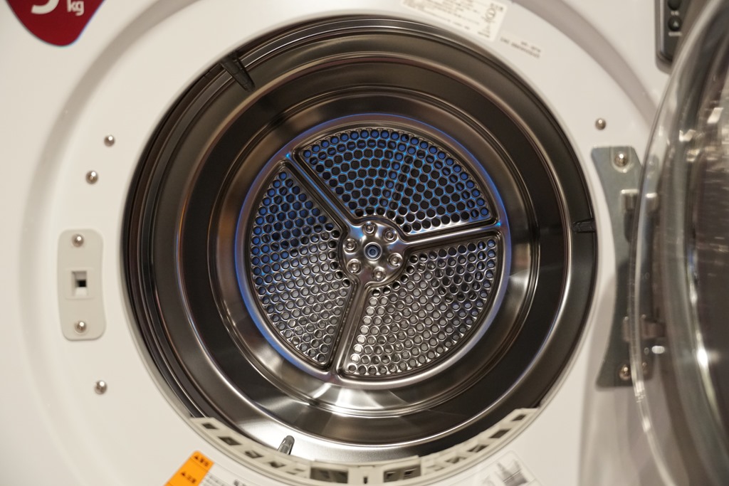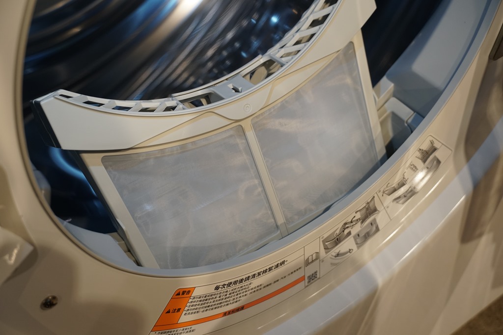 在衣物乾燥過程中,所排出的氣體可能都含有棉絮、頭髮或是微塵,他配備比絲襪還細的]超細密雙重濾網,可過濾微小的棉絮微塵,使用後也方便清潔濾網,並可提醒濾網是否安裝妥善。另外在集中濕氣成為水滴的冷凝器,在傳統乾衣機上,都必須自行清潔與乾燥來加強衛生與耐用,在這台機器上沒想到還能自動清潔,透過三道水流自主清洗,去除微塵,常保機器乾淨並提高乾衣效率,真的非常聰明又方便。