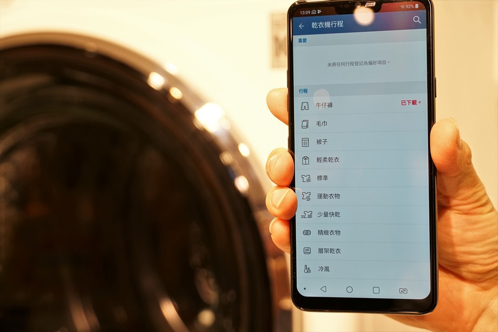 剛剛提到 APP,他可以透過 Smart ThinQ APP 來操控乾衣機外,還能下載更多乾衣行程來使用。因為乾衣機的壽命非常長,所以在這段時間如果生活習慣或是環境改變了,都不用擔心原本內建的行程無法配合。