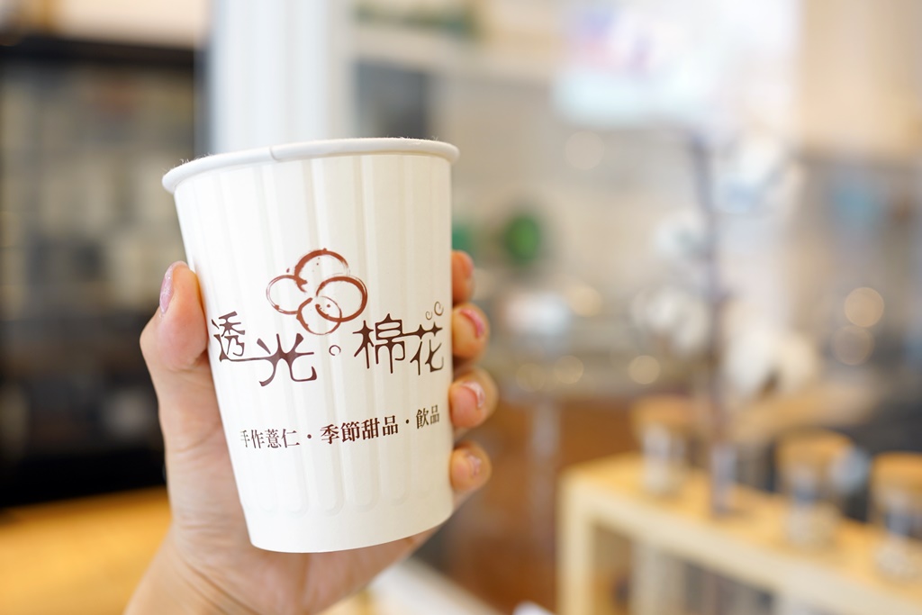 透光棉花的招牌就是手作薏仁,延伸出各式各樣的創意甜品,從店面外觀到外帶的杯子,都給人像棉花般輕輕柔柔的色調。