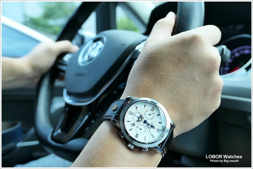 ▼不銹鋼打磨搭配強化玻璃的設計,讓整個錶面更加清透又耀眼,就好像在黑夜中散發出微微亮點的星光,讓人捨不得移開目光!大口也很喜歡邊開車邊戴著它出門,皮質方向盤加上厚實溫潤的義大利皮帶更是絕配!