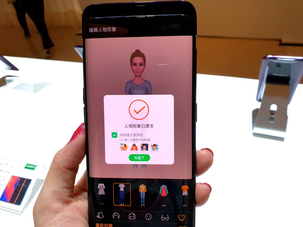 在拍照中的 “萌拍” 選項中,我們可以選擇想要的可愛動物圖像或是自行建立自己的頭像,但另一個相當… 好吧,如果說一般美顏手機是魔鏡的話,那麼這項功能就是 “照妖鏡” 的建立專屬美顏功能!