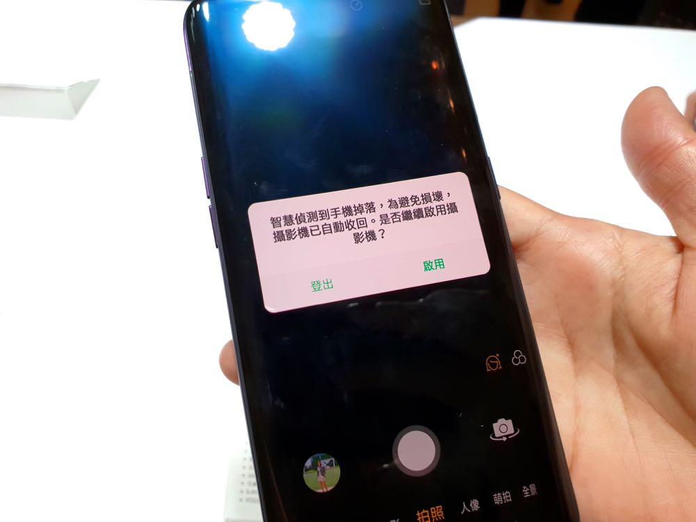 OPPO FIND X 的升降鏡頭不只把前後鏡頭都放在其中,還有用來做人臉辨識的 3D 結構光技術也都巧妙的嵌在其中。消費者只要開啟相機功能就會自動升起,而除了關閉鏡頭,FIND X 還能偵測用戶的手機掉落動作來在掉落到地上前把鏡頭收好關閉保護。