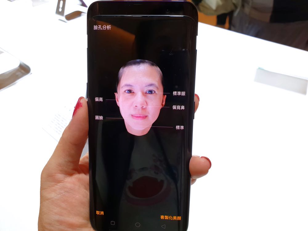 在自拍模式中選擇右邊的美顏後,可以自行設定想要的美顏,也就是讓 FIND X 先掃描自己的臉部(然後它會很老實的跟你說你的五官結構),接著再針對每個部位調整成自己的理想值,接著以後自拍時,就可以用所儲存的五官來拍照了!