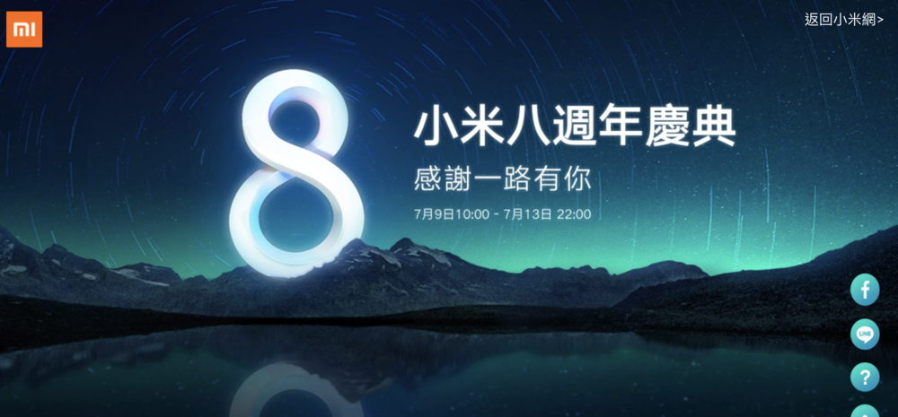 小米 8 週年活動官網:http://event.mi.com/tw/8th-anniversary2018/sales