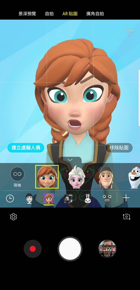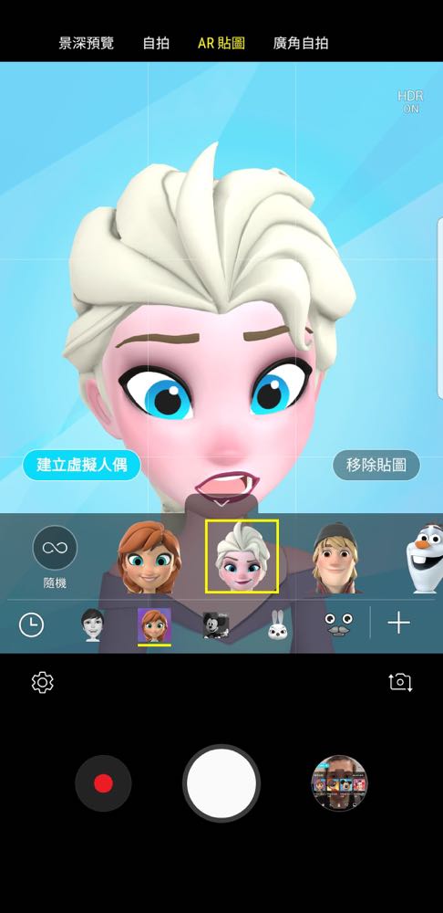 下載後就能從 AR 貼圖中切換喜歡的角色,讓自己真的化身成冰雪公主做出獨特的表情符號、錄製語音、唱歌或是任何想要做的動作來跟好友們分享!