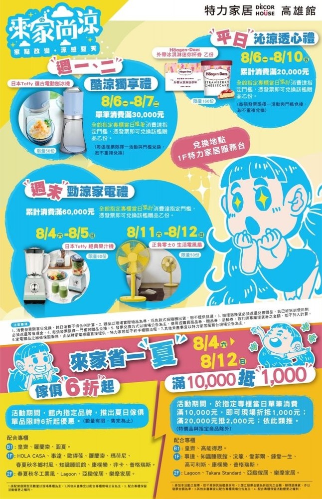 8/1(三)-8/12(日)到特力家居高雄館官方FB指定貼文https://goo.gl/E16RQa
