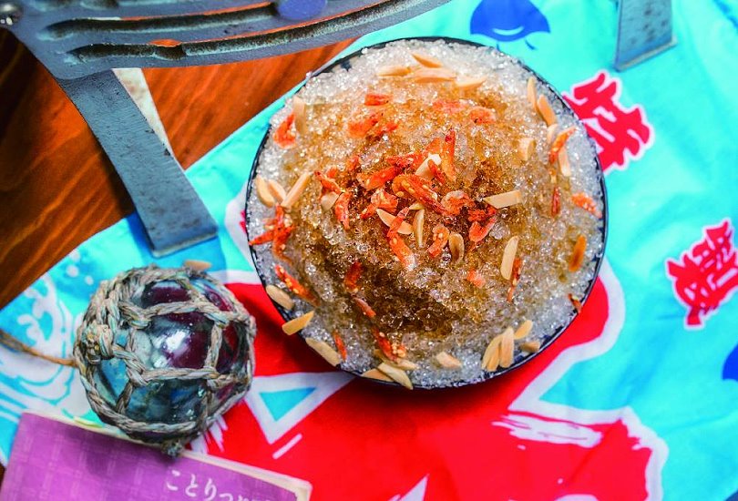 ▼來自屏東的「櫻花蝦冰」,採用清冰加上酥脆的櫻花蝦,再淋上獨家秘方黑糖,鹹甜滋味顛覆傳統想像,挑戰大家的味蕾!(照片出處:2018台灣美食展官方粉絲團提供)