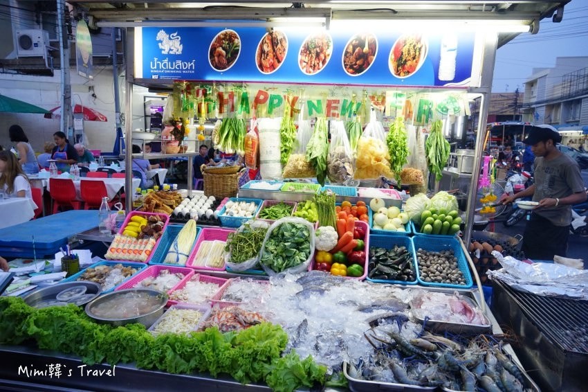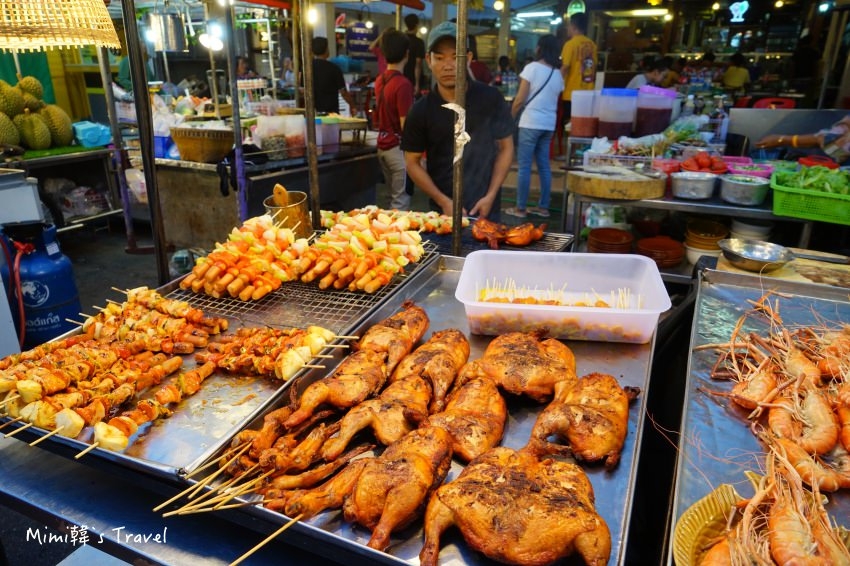 因為等等我們還得回曼谷,而且還打算要去逛Cicada Market創意市集,所以也不能太晚來逛華欣夜市,我們大約黃昏5點左右抵達,天色沒暗,但是攤販都已經就定位,而且這時候太陽已經沒那麼熱,可以輕鬆逛享受夜市裡一籮筐的泰國美食。