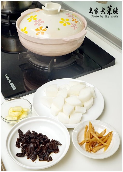 ▼食材相當簡單,老菜脯、蒜頭(大約7顆上下)、薑片或薑絲(我比較隨興抓一小把)、白蘿蔔就依據自己喜好來加入。