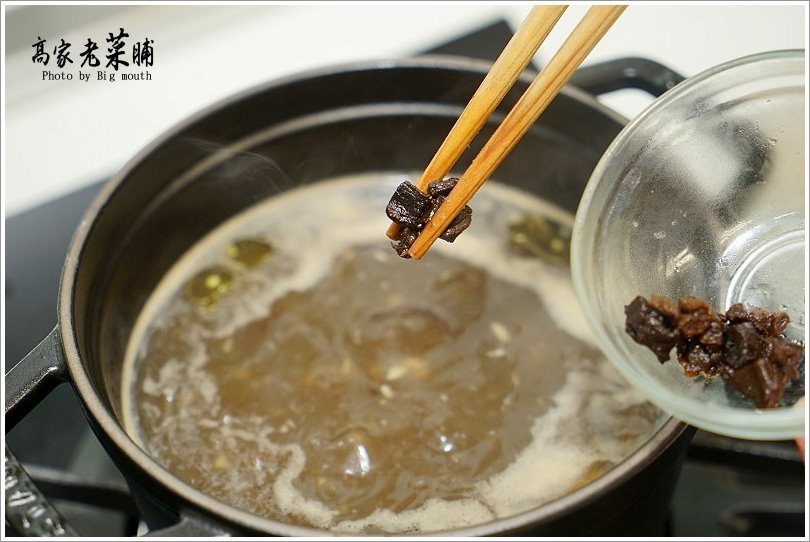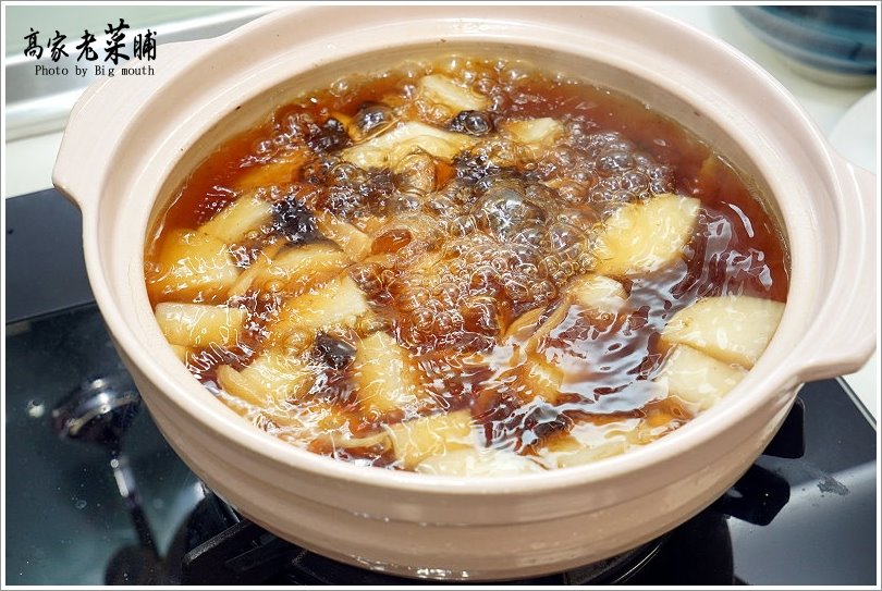 ▼如有白蘿蔔可以再多燉煮10分鐘。(老菜脯燉再久顏色依然是深色,也是辨別真偽的方法)